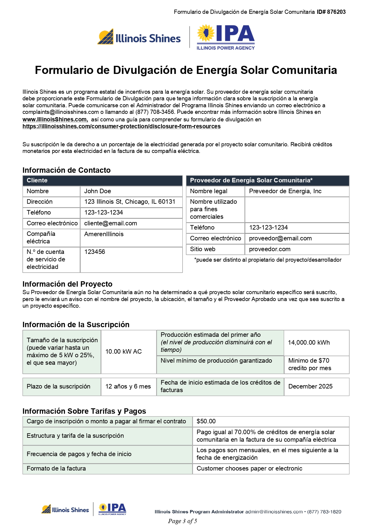 Un proveedor de energía solar comunitaria puede administrar la cuenta de servicios públicos de un cliente para consolidar las facturas de servicios públicos y energía solar comunitaria. Le recomendamos preguntarle a su proveedor de energía solar comunitaria si tiene la opción de elegir si administran su cuenta de servicios públicos.